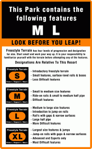 Freestyle Terrain has four levels of progression and designation for size. Start small and work your way up. It is your responsibility to familiarize yourself with the terrain before at tempting any of the procedures.
