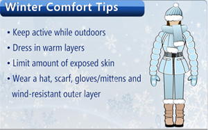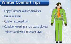 Check the weather forecast and use the Comfort Tips below to choose the appropriate clothing for an enjoyable winter day outdoors.